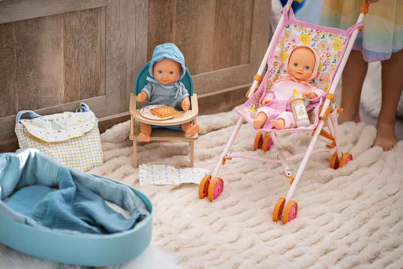 Pretend play with dolls provides the opportunity for little ones to practice social and empathic skills during play. Important fine motor and nurturing skills are developed as children role-play the world around them.