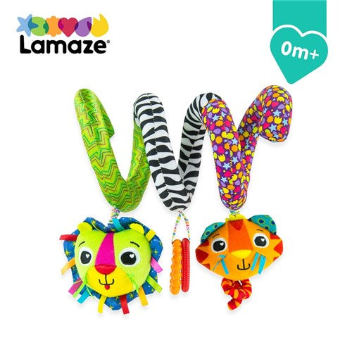 Activity Spiral is perfect for fun on the go! With multiple textures and fabrics, including Pull down stretchy cords, clacking textured rings, and Jingle Sounds. Activity Spiral Loops around stroller bars, cots and capsule handles. Suitable for 0m+