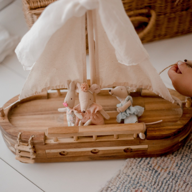 Ready to set sail on a sea of imagination? Then hop aboard the Adventure Ship! This sturdy wooden ship is handmade from acacia and lychee wood, and comes complete with canvas sails, a ladder, and an anchor. It's also equipped with two friendly gnome dolls, ready to take you on a journey of creative fun. So whatever your destination may be, the Adventure Ship is ready to take you there.