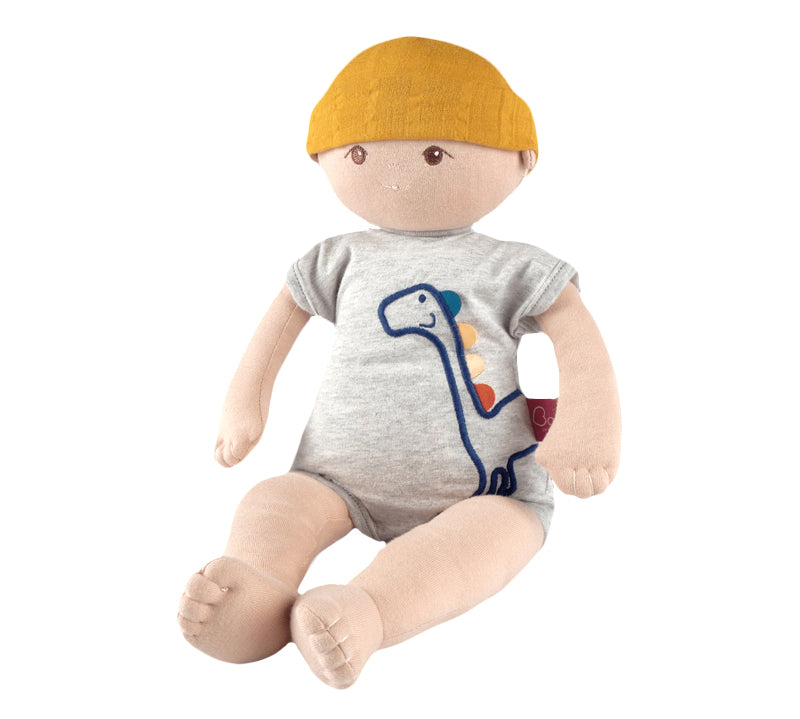 Meet these adorable organic fabric dolls with a weighted bum that provides comfort as you hold them. They are organically made and OE100 certified. All of their organic 100% cotton clothing is removable, even down to their cloth diaper. Their bottom is filled with polyester beans.