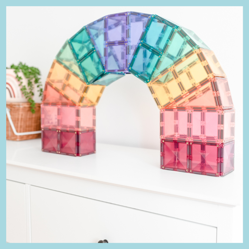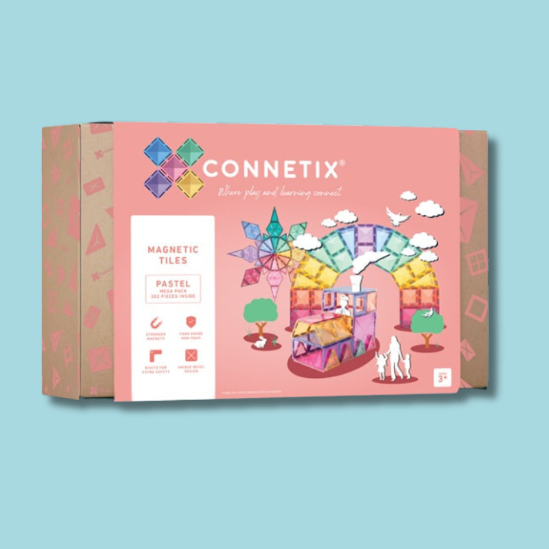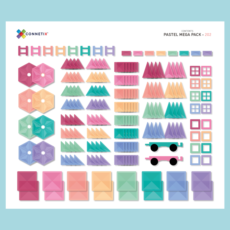 Providing endless possibilities for creativity and learning through play, the Pastel Mega Pack is the perfect option for siblings, family and/or friends to enjoy building mega Connetix creations together!