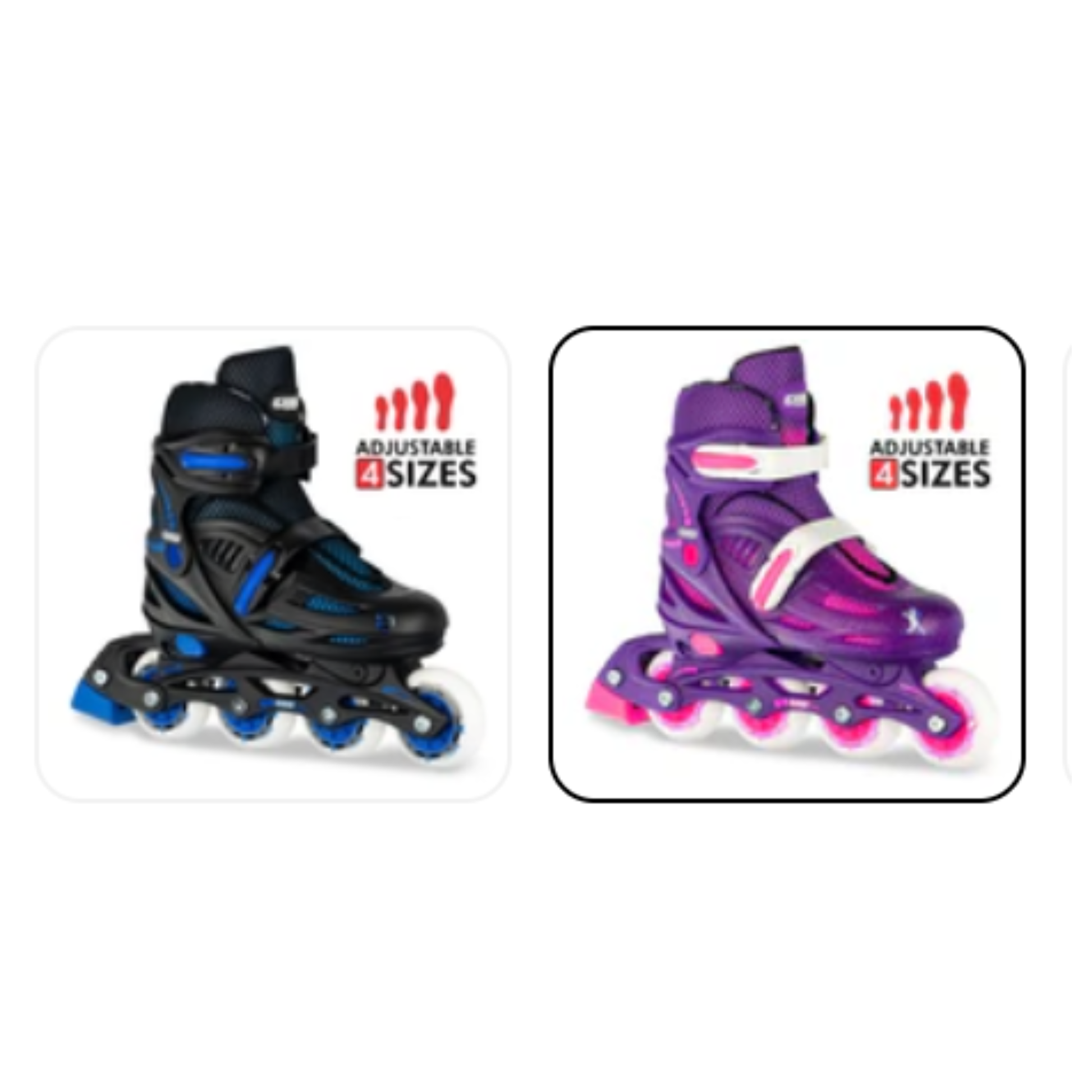 The 148 Inline Skates are made for smooth, confident cruising. Featuring bold designs (choose classic Black or sparkly Purple Glitter), they combine comfort, safety and speed. With reliable bearings and lightweight construction, these are great for everyday outdoor play.