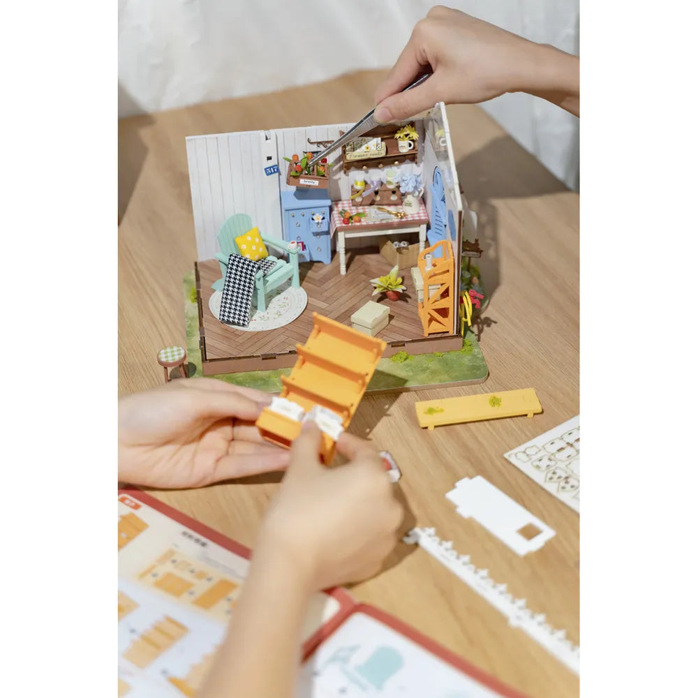 The Rolife Dreamy Garden House is a beautifully crafted DIY miniature kit that brings a lush greenhouse to life in intricate detail. From hanging plants to garden tools, shelves, and windows that open, every element is designed to immerse you in the joy of building and decorating a tiny garden retreat.