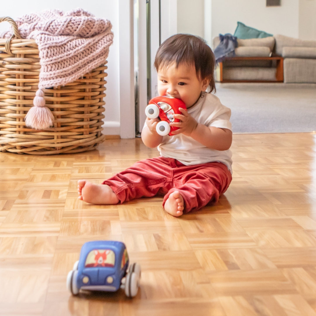 Designed for toddlers on the go. With no batteries required, simply pull the cars backwards, release and then watch them zip across the floor.