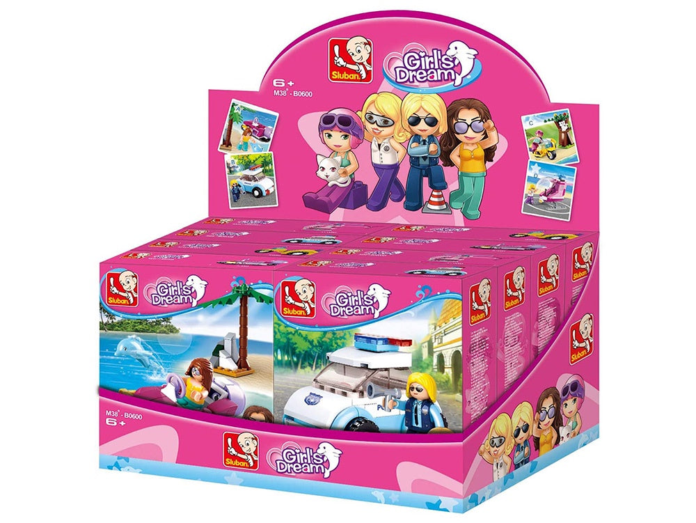 Dip into a world of creative possibilities with the Sluban Girl’s Dream series. Each purchase includes one mini build - randomly selected from four charming designs in the collection - perfect for solo play, trading among friends or expanding a playful streetscape.
