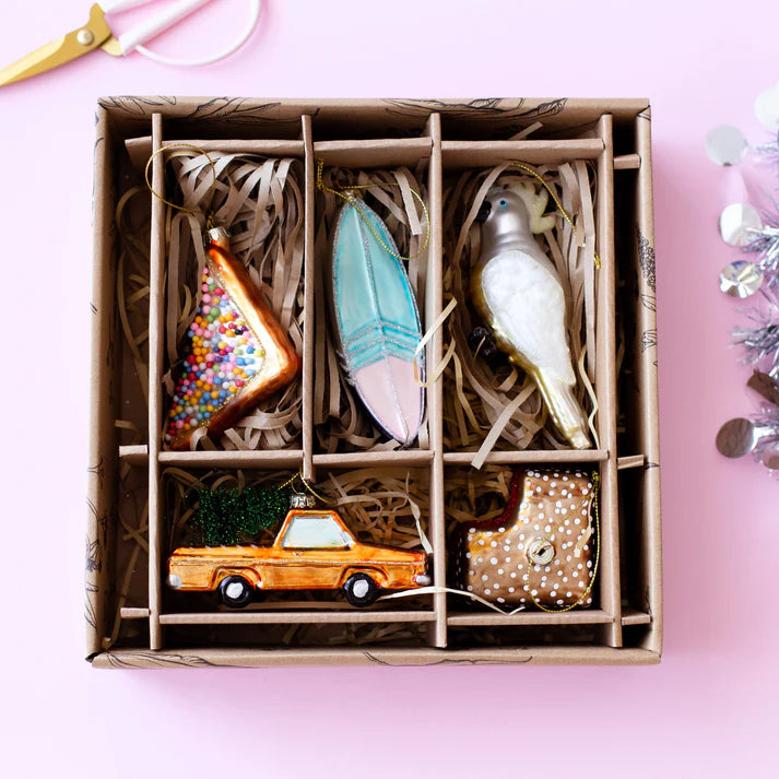 Add a little Australian magic to your tree this season with this limited-edition set of five hand-blown glass ornaments. Whether you’re a local legend, proud expat or just love the charm of anything Aussie, this keepsake set is packed with Aussie nostalgia and a touch of festive fun. Each ornament captures an Australian icon in glittering, giftable form. Delicate, detailed and made to last, these treasures will become part of your Christmas story for years to come.