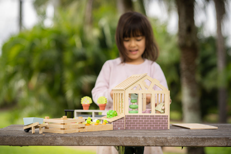 This adorable playset is perfect for children who love nature and playing in the garden. A traditional plywood greenhouse that has an opening door and 2 removable roof panels. The rest of the clever design includes: