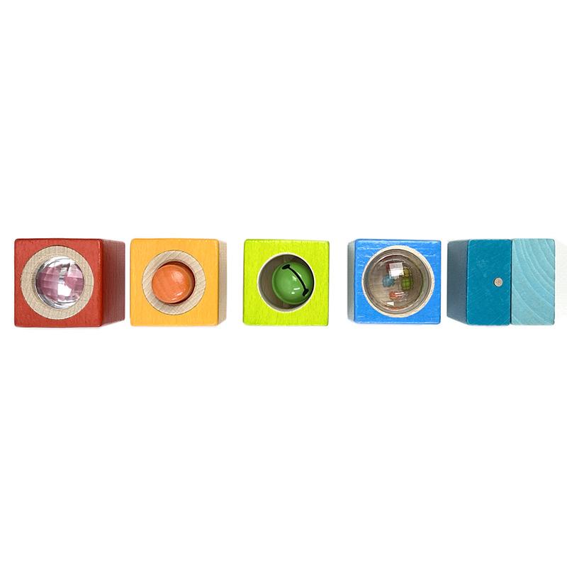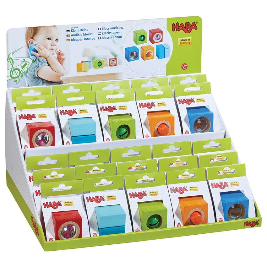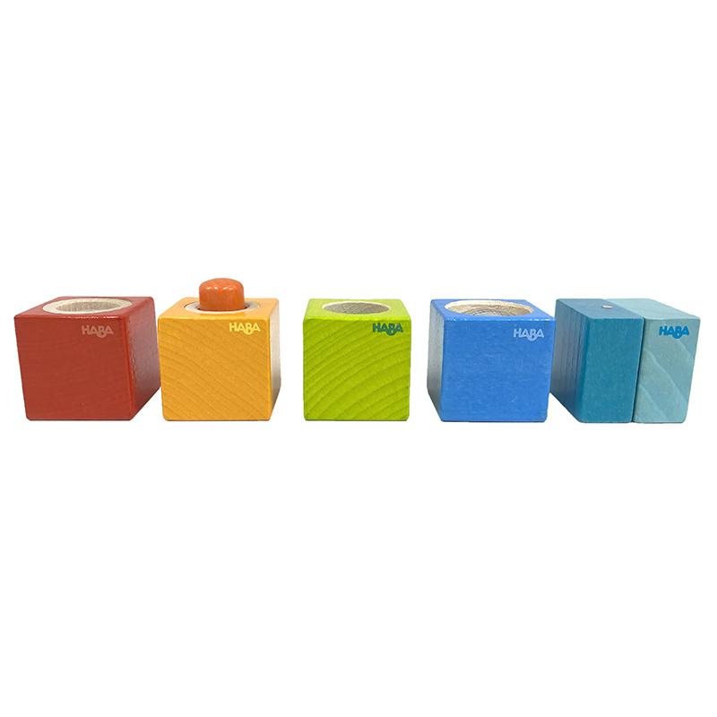 Discover your favourite acoustic effect with the Haba Sound Blocks. Made in Bulgaria from eco-friendly beech wood, the colourful blocks highlight 5 different sounds to discover. Squeak, rattle or click, it will be hard to choose just one!