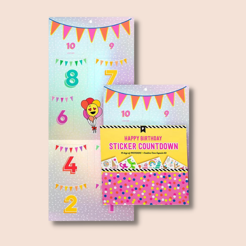 There's no party like a sticker party! Boost your child’s anticipation for the Big Day with this 10-day Birthday Countdown Wall Calendar. Under each numbered flap you'll find a sheet of sparkly collectible Pipstickers and a fun creative prompt.