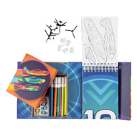 This comprehensive activity set contains pop-out planes primed for decoration with included stickers and vibrant markers. Construct the planes with propellors and aerodynamic protective nose cones to ensure a smooth flight, and the large format target sheets transition the creative activity into a fun game of skill.