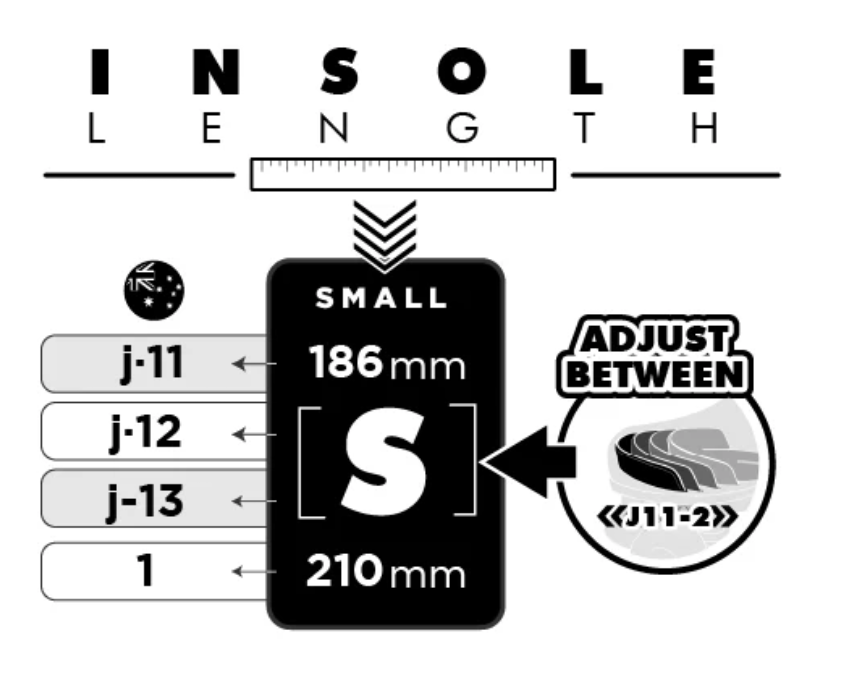 - Adjustable sizing – fits AU kids’ sizes J11–1 (foot length 18.5–21cm)
