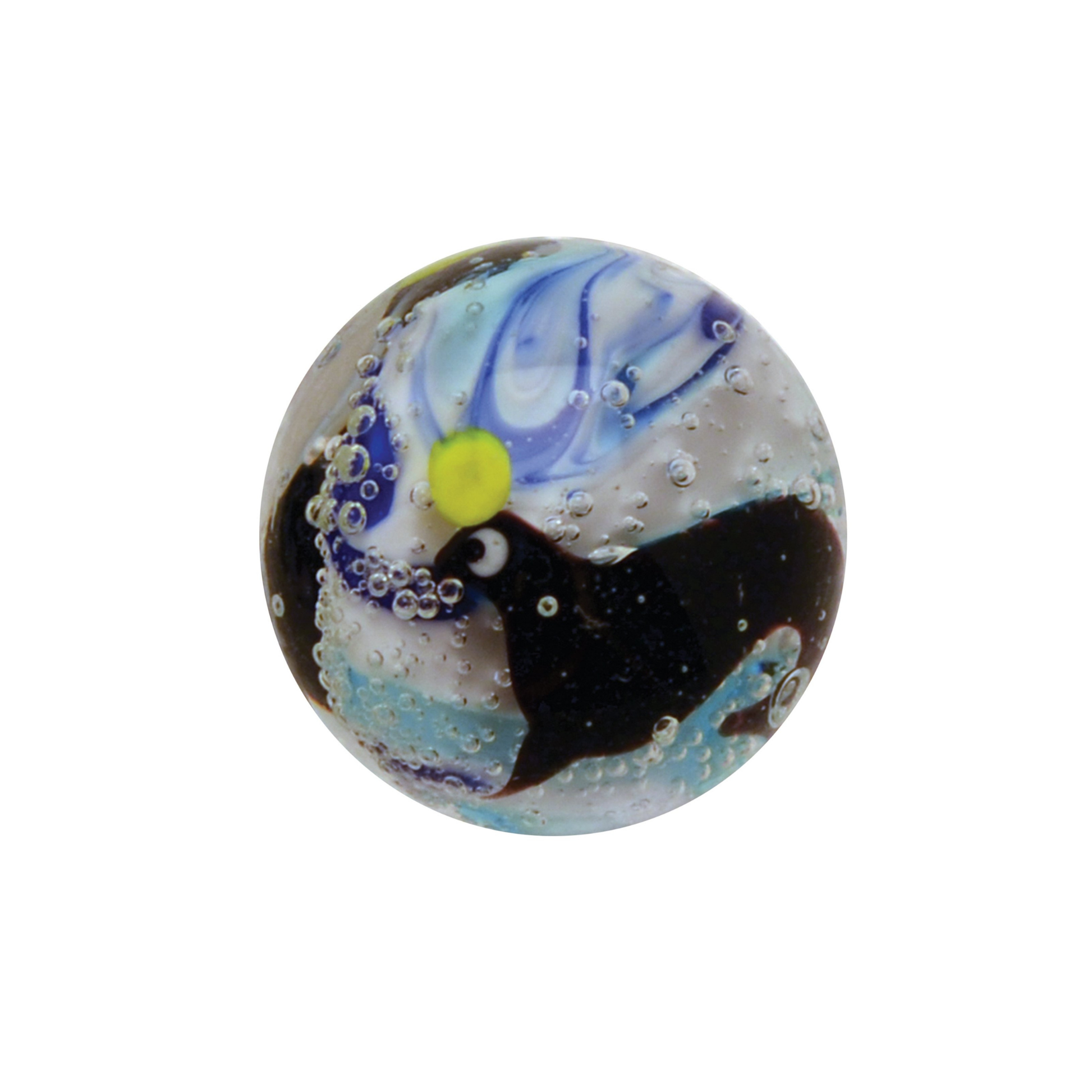 This stunning 25mm handmade glass marble is part of the coveted House of Marbles collection — each one a miniature work of art. Swirling inside is a vibrant sea life motif, handcrafted by skilled artisans to capture the wonder of the underwater world. No two are ever exactly alike.