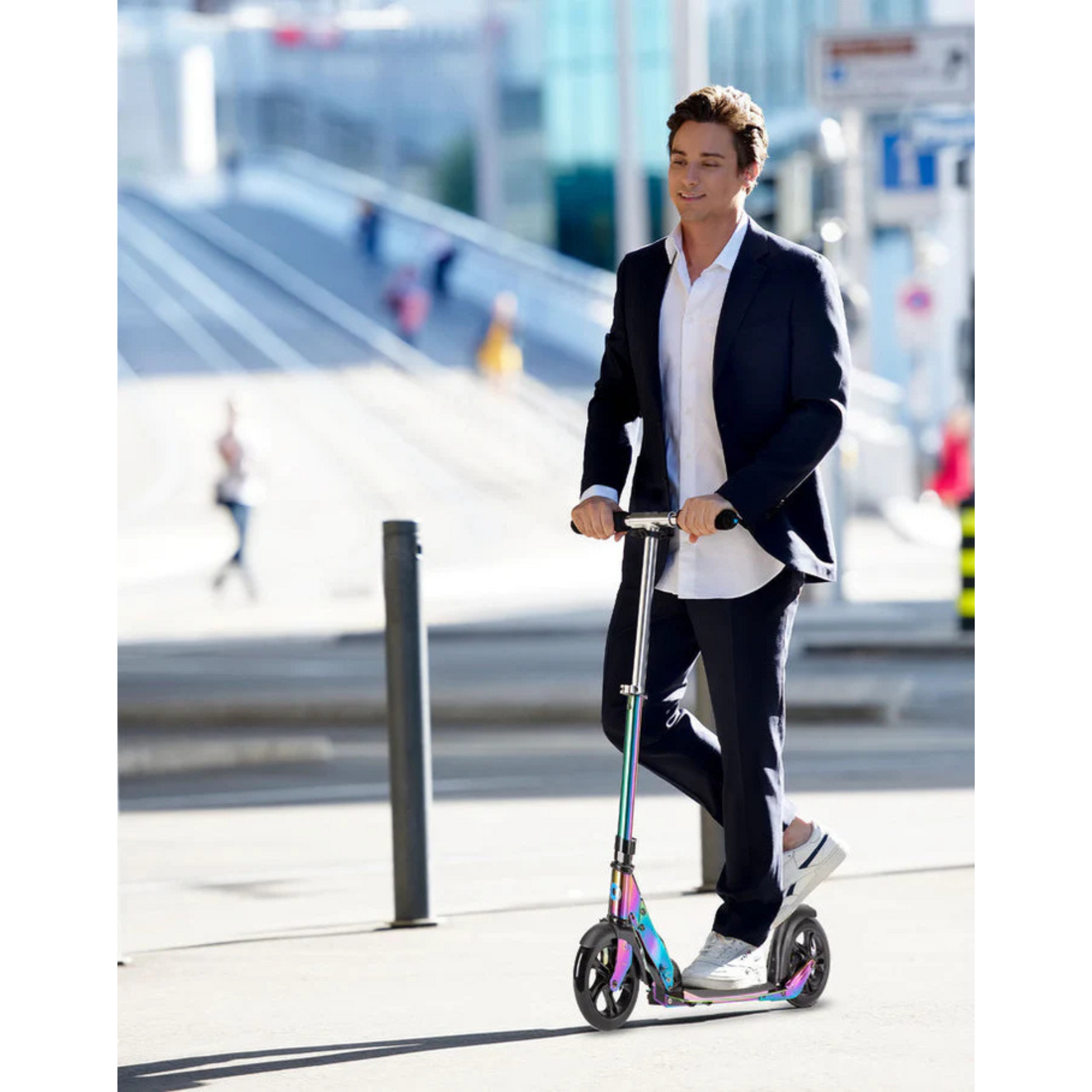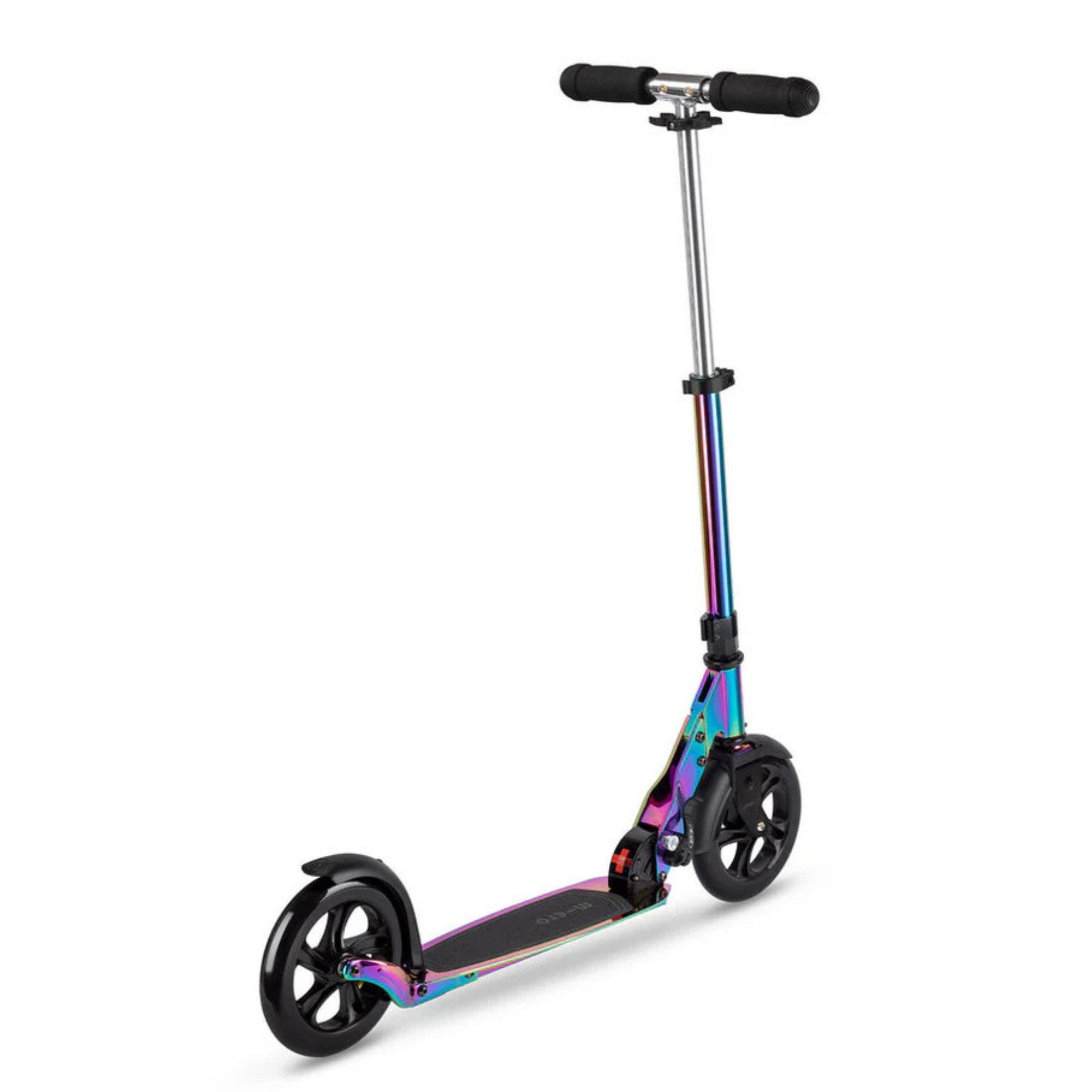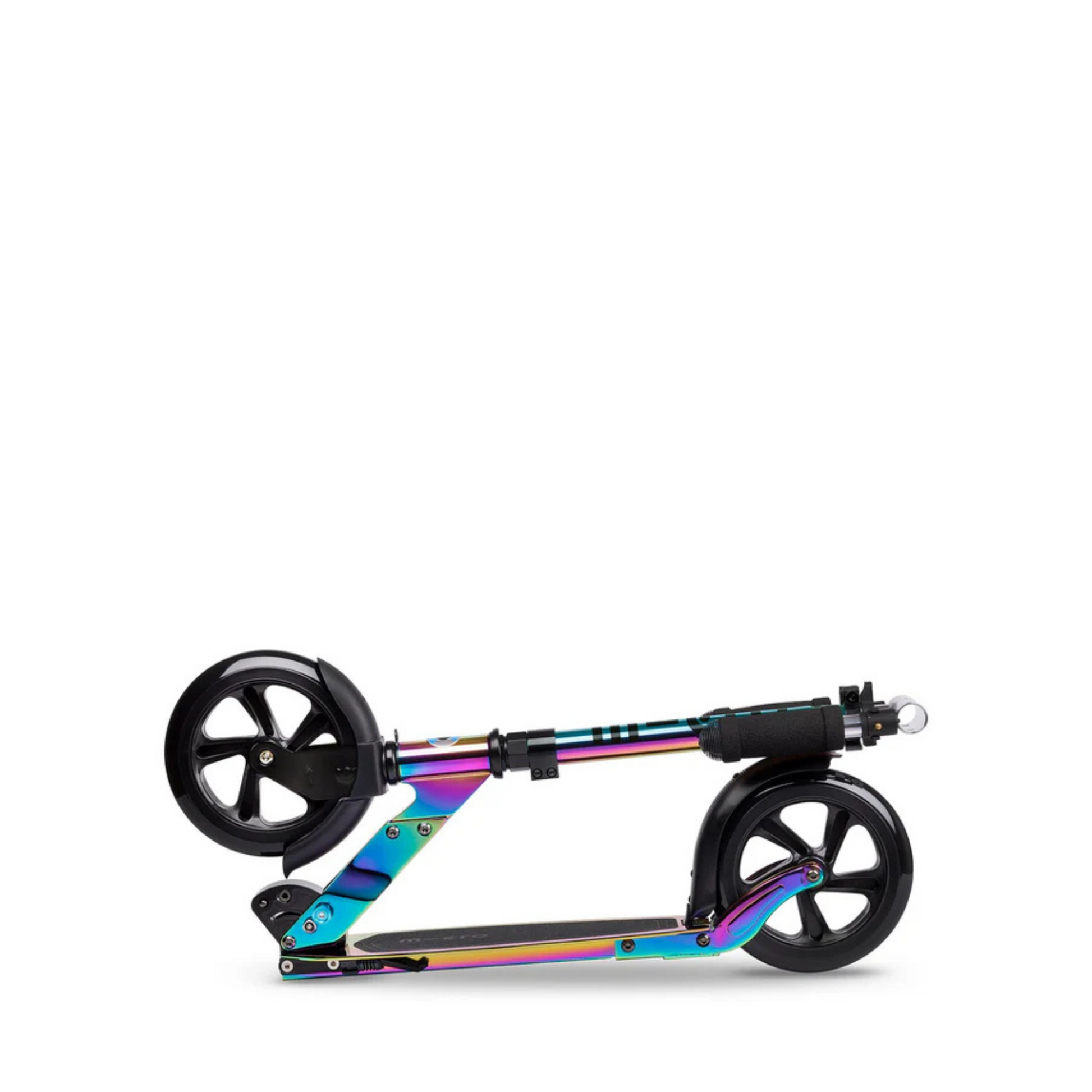The Micro Classic Neochrome Scooter combines sleek design with everyday practicality. Its striking rainbow finish and extra-large 200mm polyurethane wheels deliver a smooth, fast glide that’s perfect for commuting, cruising or simply enjoying the ride. Built with an ergonomic lower footplate and adjustable handlebars, it’s designed for comfort as well as performance.