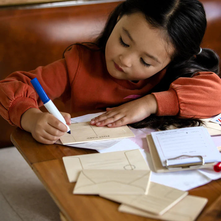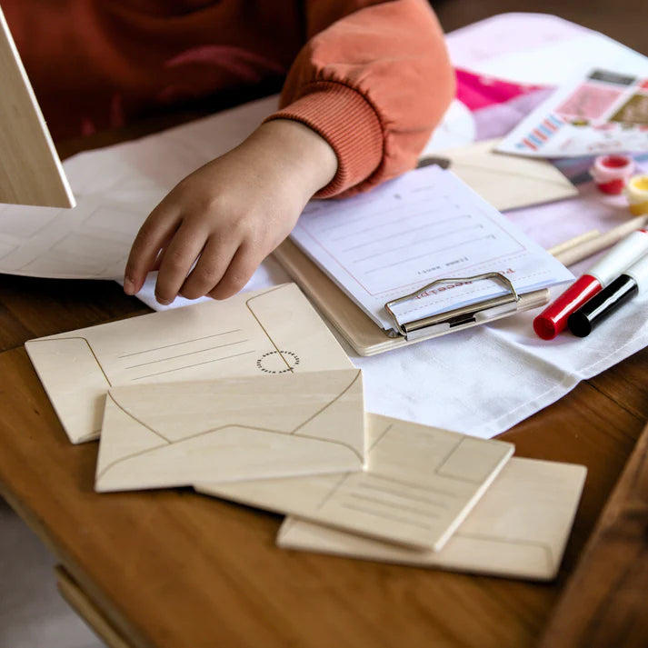 Bring the joy of snail mail back to life with this beautifully designed wooden craft kit – a perfect blend of hands-on creativity and imaginative roleplay. With everything your little postie needs to run their own miniature mail service, this 17-piece set encourages screen-free fun and helps kids build storytelling, organisation and communication skills.
