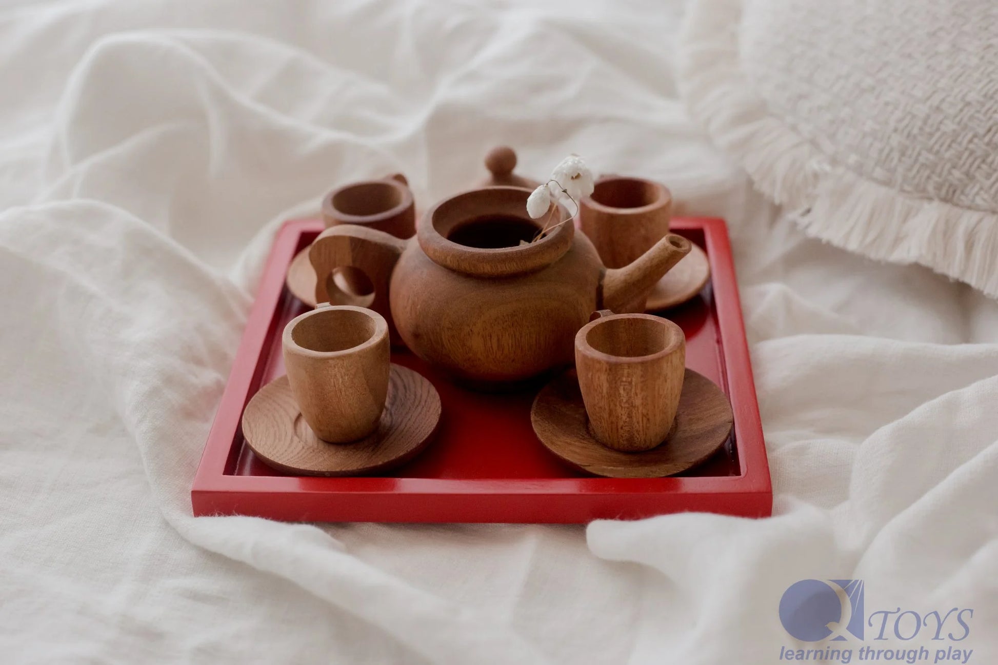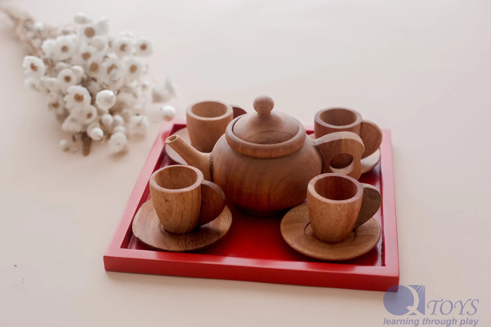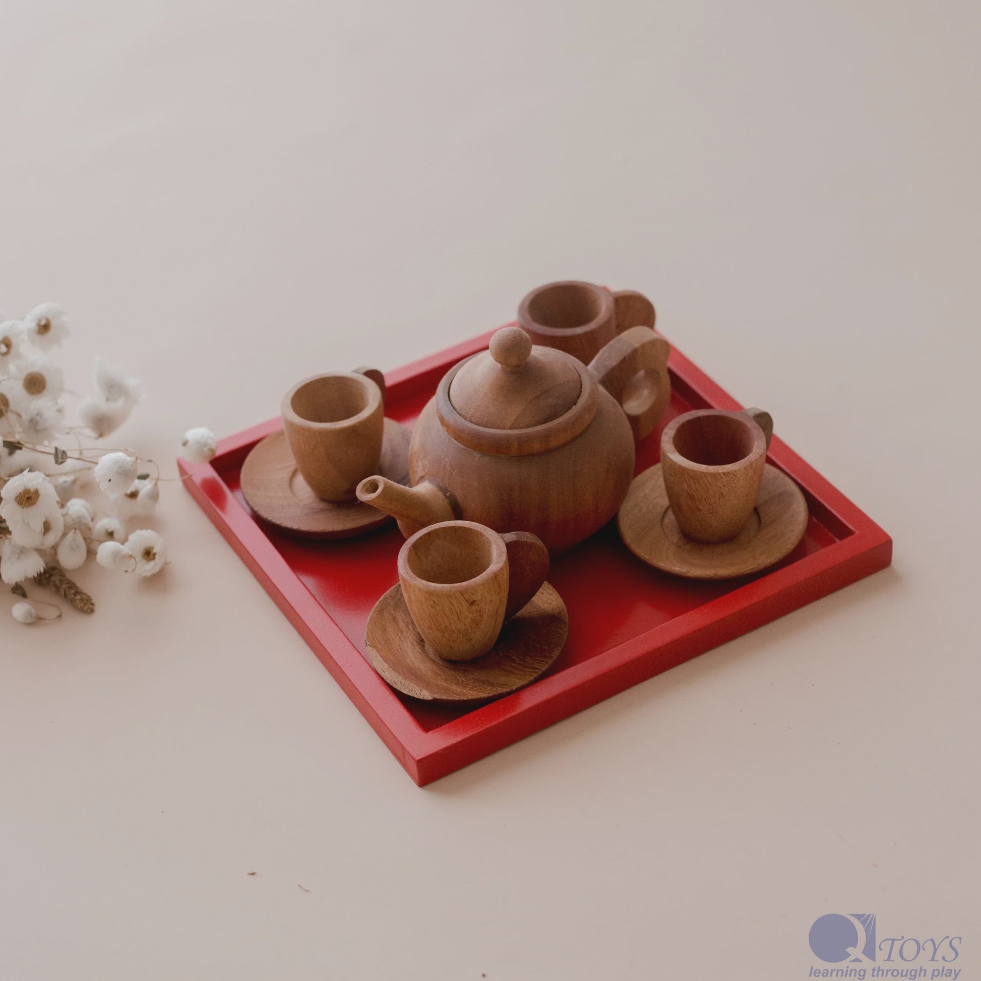 QToys Japanese Wooden Tea Set – 8-Piece Pretend Play Set