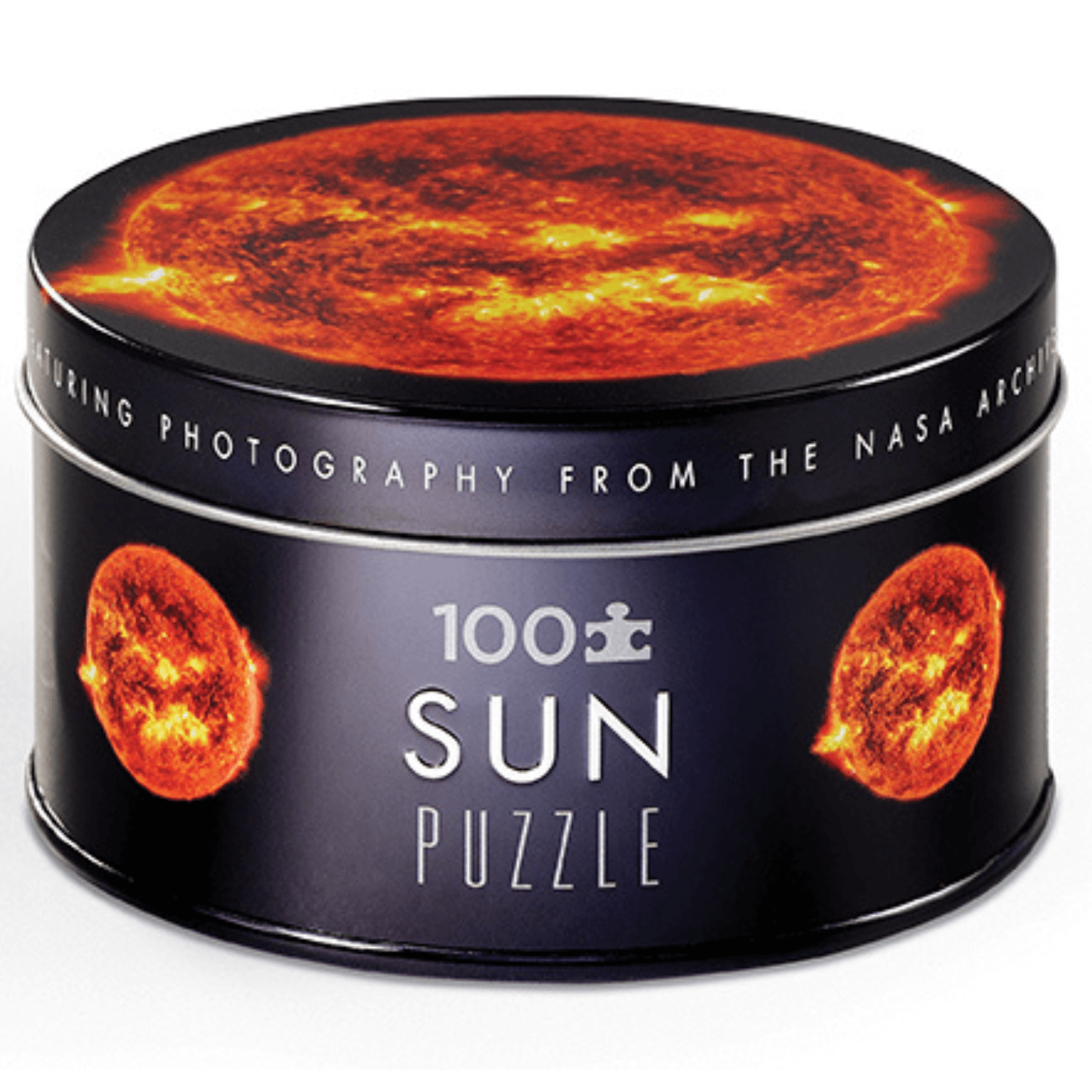 Four challenging little puzzles using beautiful NASA images of the wonders of the Solar System. These round intricate puzzles of the Earth, the Moon, the Sun and Jupiter each come in a convenient tin container.