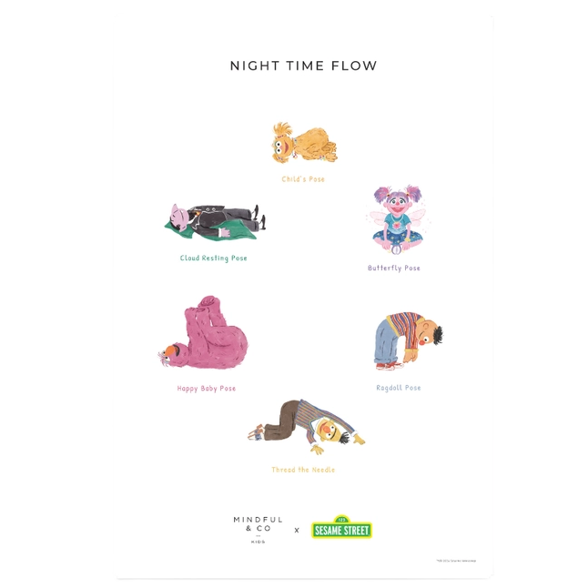 Morning Flow: Start the day with a burst of energy! The morning flow side showcases a series of fun and invigorating yoga poses, led by beloved Sesame Street characters. These poses are designed to wake up the body, boost energy levels, and set a positive tone for the day ahead.
